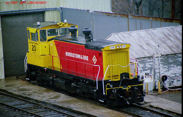 | New Jersey | M&E 20 ex CRL 1500, exx ACWR 1500 exxx CSX 1315 nee RF&P 91 | Morristown & Erie | Repainted Yellow/Red -- 1997 Photo thanks to Jeff Lubchansky. The 91 stayed in its blue/gray until it arrived at the Morristown & Erie -- I personnaly caught it up in Bellefonte and Altoona, PA in the mid-90s. |