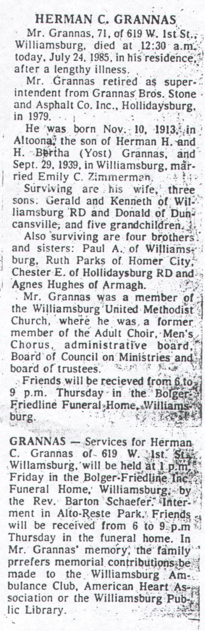 Switchboard.com's directory has a Herman C. Grannas listed in Williamsburg as of 1-15-2001. This is probably a son or nephew.