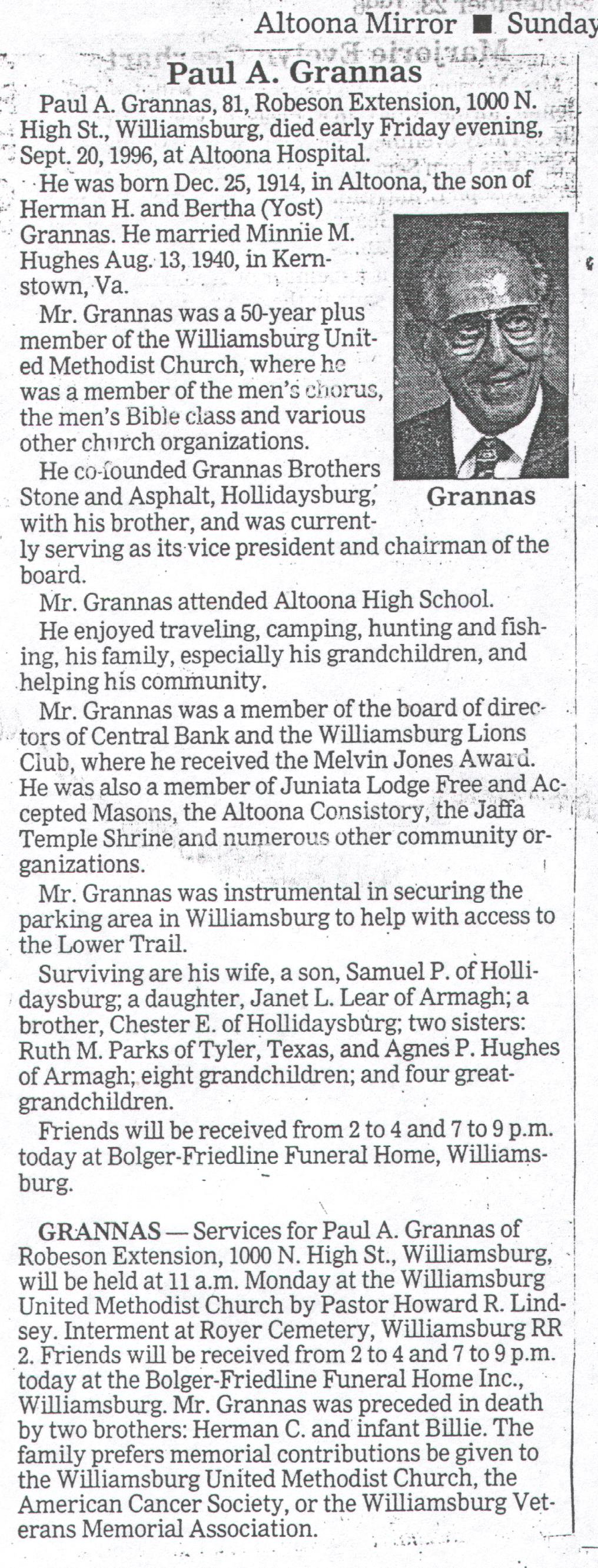 She married Otto Grannas, and resided in Altoona at her brother Harry's death in 1958.