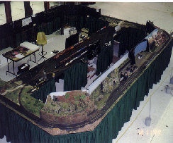 The HO modules are the basic NMRA style of 2' X 4' x 40". The difference with our division is the addition of a yard splitting the square and setup as a point to point with one half of the yard being Roseville California and the other Burnham Yard in Denver. With a split yard, we can run a couple of different operation schemes. Waybill, through freight, lcl, locals, and passenger are all possible. The club owns the four corners and the yard and right now, with all of the possible modules in place the largest possible setup is 24' X 24'. Power is supplied with four Aristrocraft Throttle Engineer Wireless controllers and two local MRC throttles. All of the throttles run through four towers with block control.