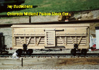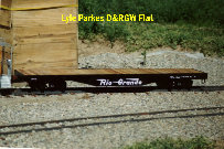 The caboose was built from scratch in the same shop and is painted in authentic Rio Grande colors. The Colorado Midland Palace Stock Car was built by a fellow member Jay Buchanan and has since been painted and lettered. The flat was built by Lyle Parkes and works great for the open houses. Their trackage is now over 1500' and has 2 loops with a wye and a trestle that is over 100' long. They have installed a water tower that really fills the tender and working crossing signals. Future plans call for rebuilding the trestle in a more prototype form and extending the track through a tunnel to create a double loop.