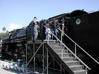 locomotive cab and also to a tent outside the locomotive to get a