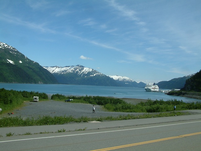 Cruise ship Norwegean Dream was in Whittier awaiting passengers for a late afternoon departure.  We see her later on our return to Whittier.