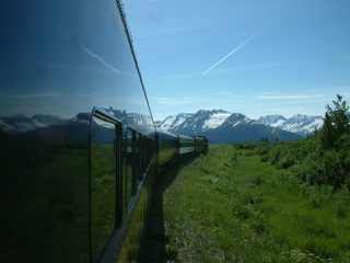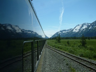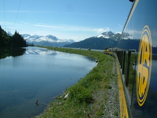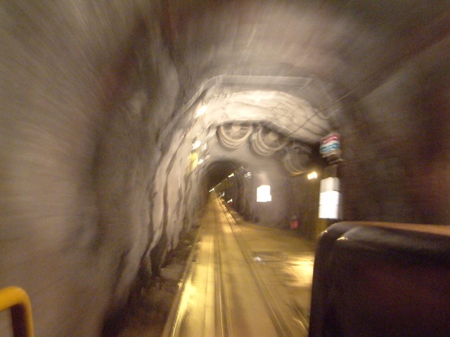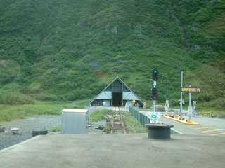 Soon the Glacier Discovery departed back to Anchorage ontime at 6:45 PM.  Below left, the Whittier entrance to the Anton Anderson Memorial Tunnel.  Below right, large fans inside the tunnel.
