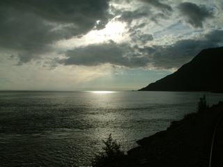 Below, the Glacier Discovery nears south Anchorage about 8:40 PM.
