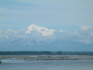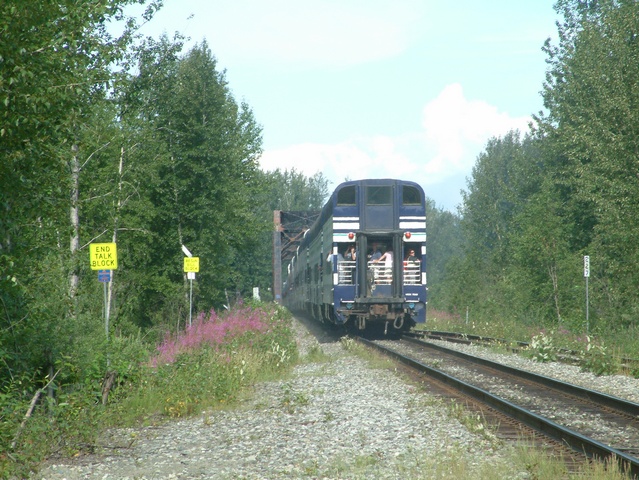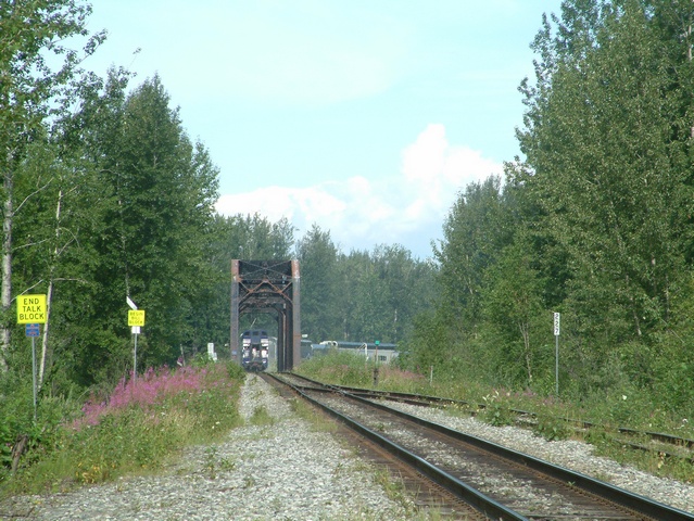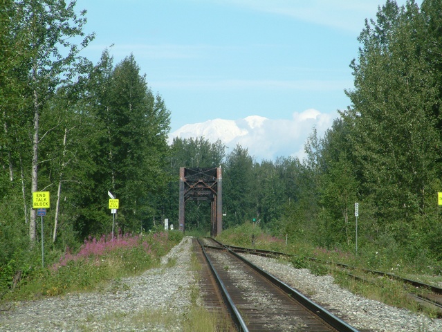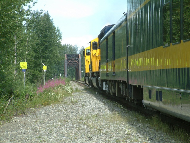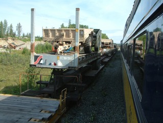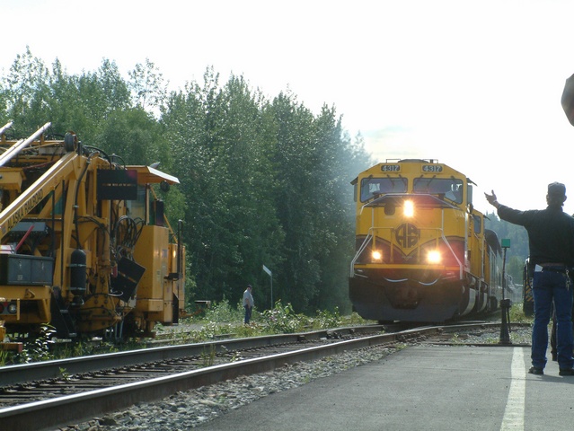 left side of the Denali Star train, Engineer Dana Godfrey does a