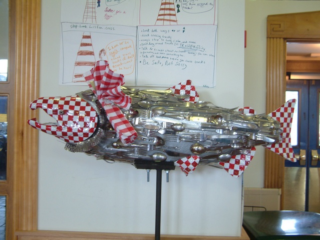 the depot was this interesting silverware salmon sculpture.