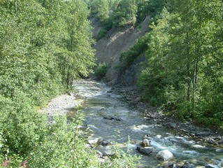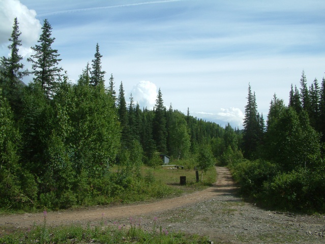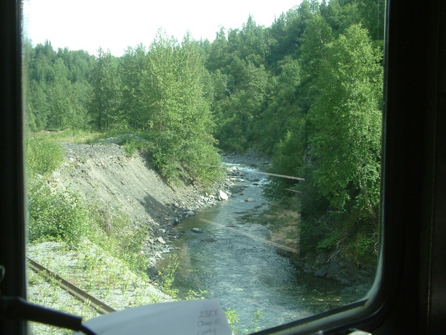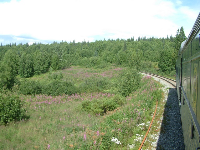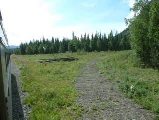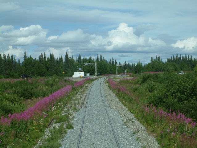 view point, the track has a road crossing of the Parks Highway.