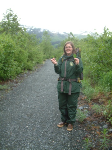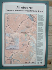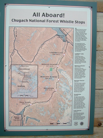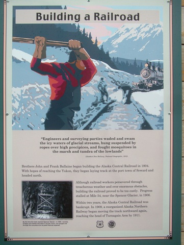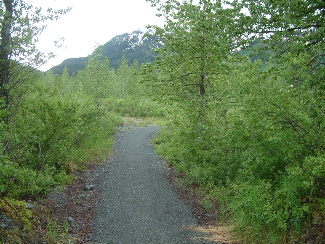 The trail leads away from the Alaska Railroad track. To begin our