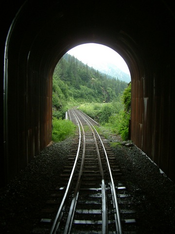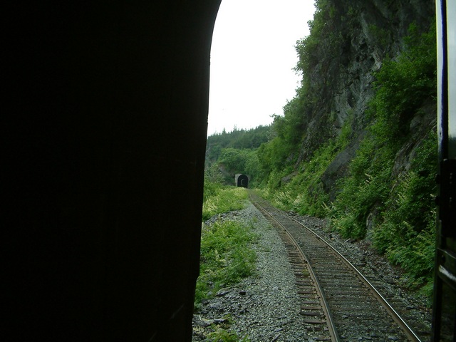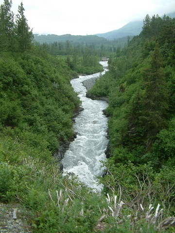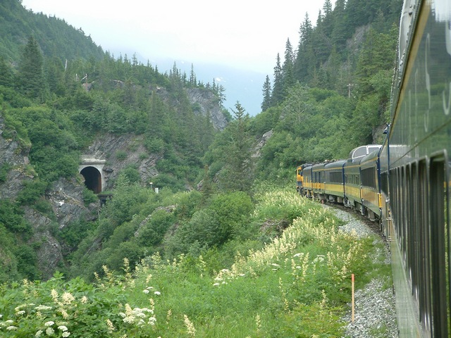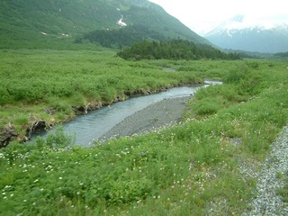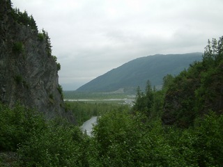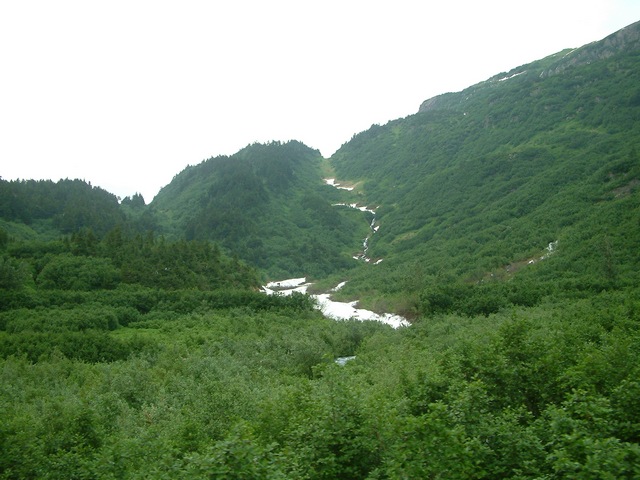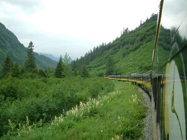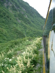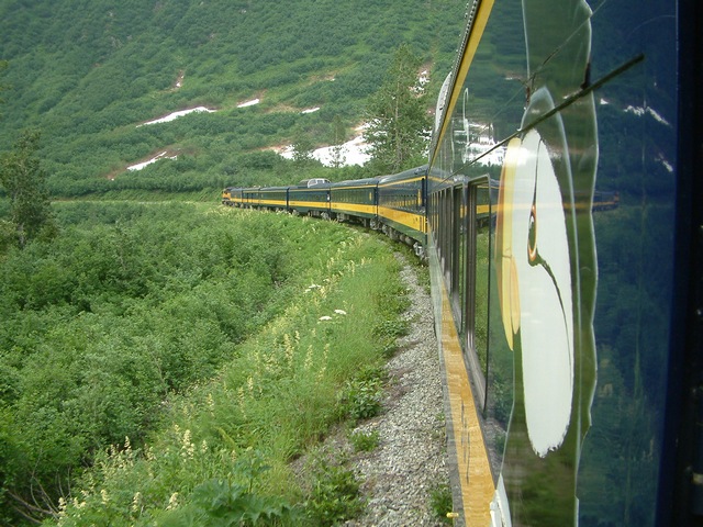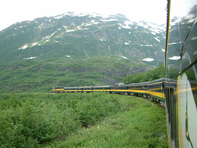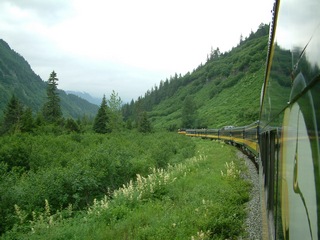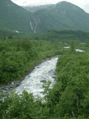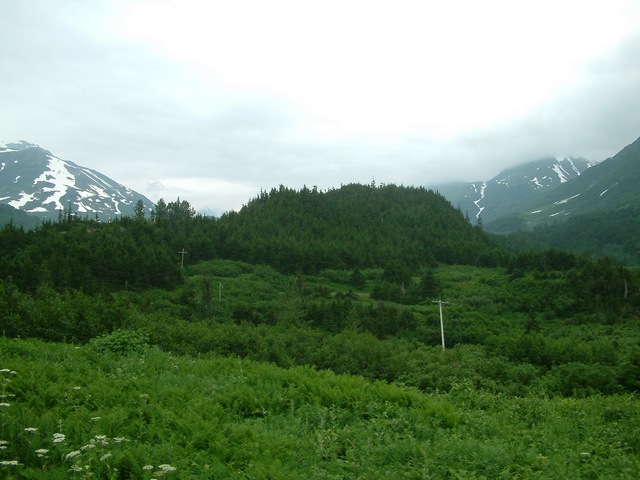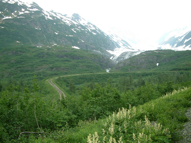 railroad was built, Bartlett Glacier spilled over the low hills in the