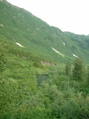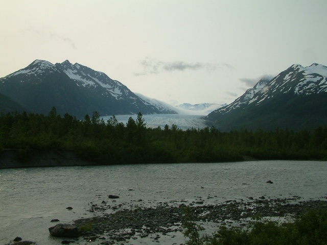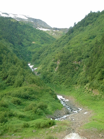 the railroad. Above Bartlett, Deadman Glacier is visible.