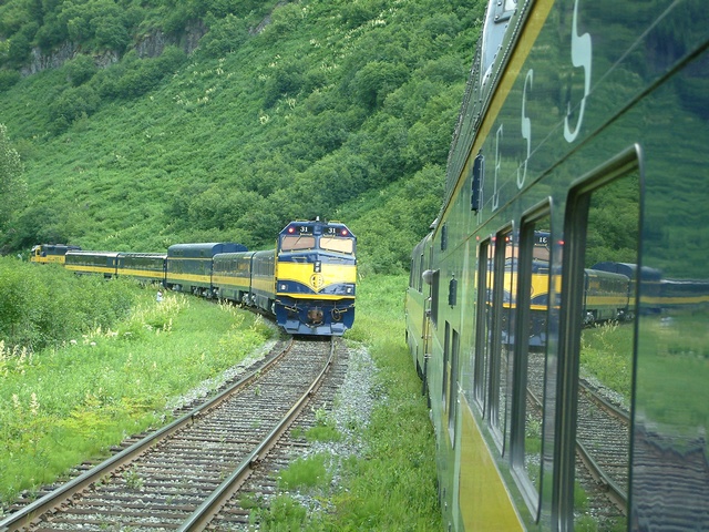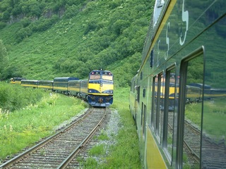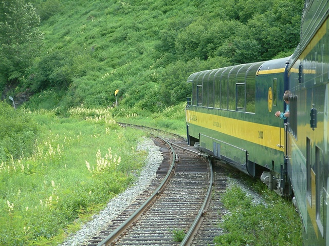 Railroad Anchorage Depot. Morning northbound passengers depart