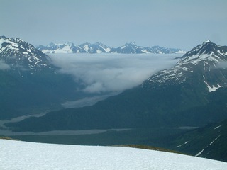 Below, the mountains to the east, towards the Prince William Sound.