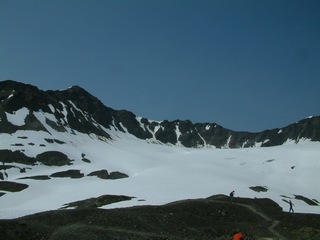 glacier then down it. He looks like a dot in the pictures.