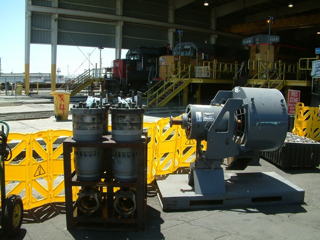 Interchangeable locomotive parts such as brake shoes, power grids, a