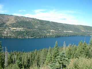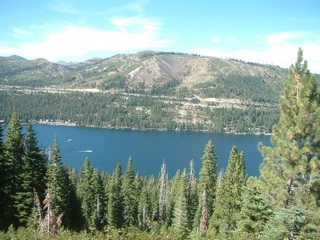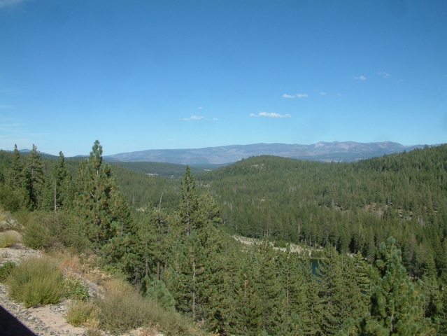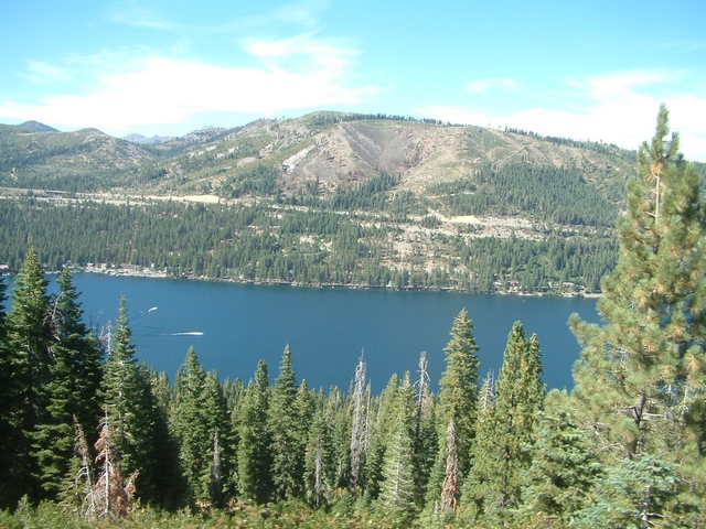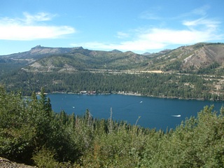 West of Donner Lake, Castle Peak is visible. Interstate 80 is