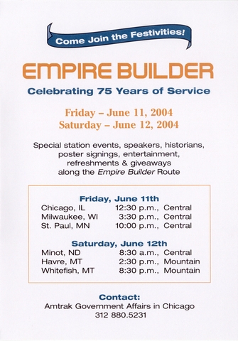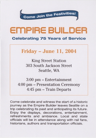 Anniversary Empire Builder train from Chicago to Seattle started on