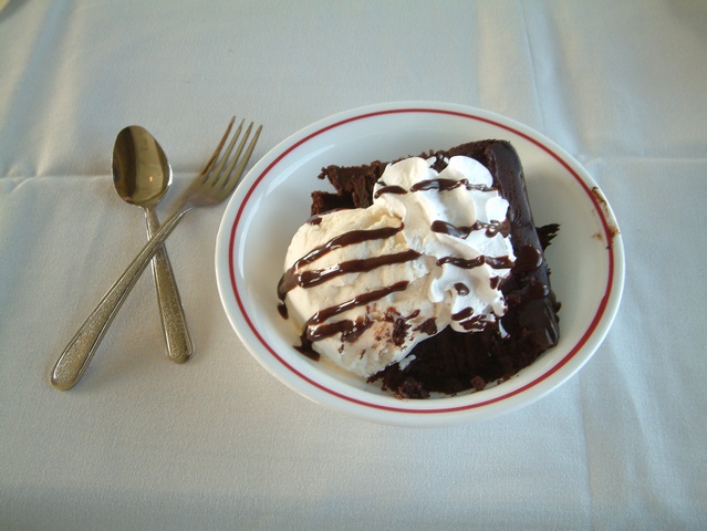 I ordered chocolate cake with vanilla ice cream which took about half