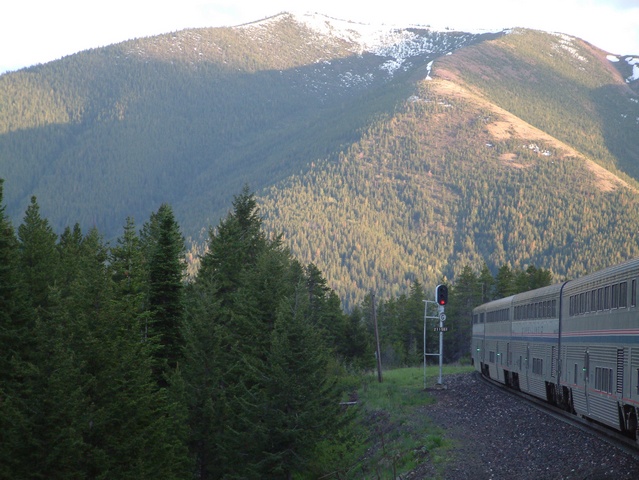 This railroad route traverses Marias Pass, the lowest crossing of the