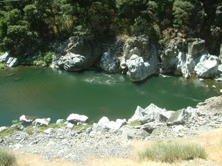 on one side of the river or the other.