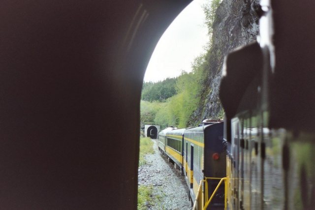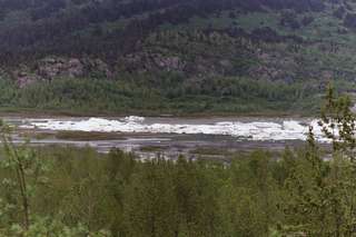 Between two tunnels, one can see that Spencer Glacier has melted back