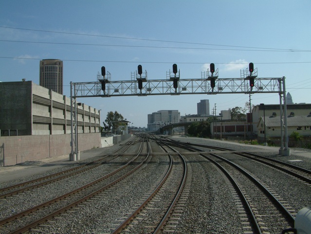 and the Gold Line bridge below the center signal mast.