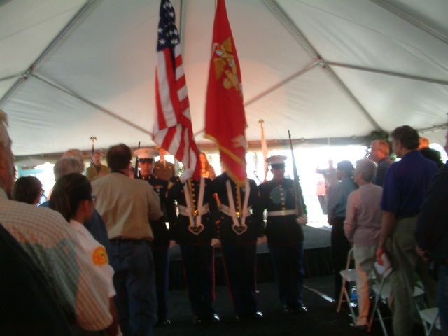 ceremonies began with a Marine Color Guard, the Pledge of Allegiance,
