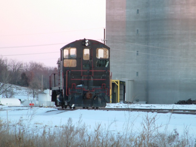 grain elevators along the railroad tracks. The first train