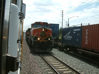 stopped 200 feet behind us. An eastbound BNSF freight appeared