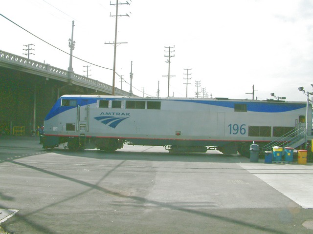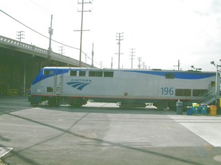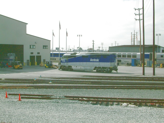 Below left, is Amtrak F59PHI number 458. The fiberglass nose is