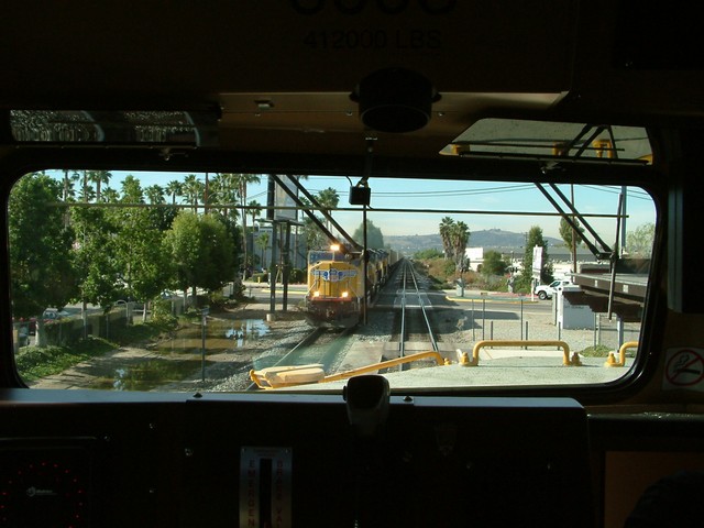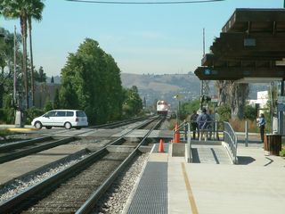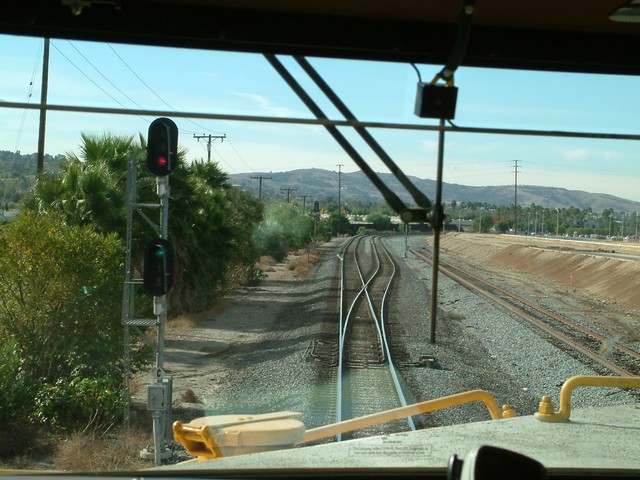 the railroad converges a single main line.An interesting note would be that Metrolink had a conductor and