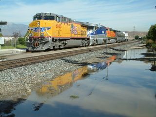 Amtrak F59 PHI number 464 and the brand new Union Pacific GE AC4400