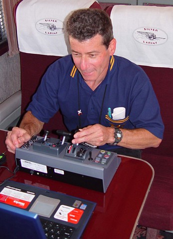 car where he had a laptop computer set up with a locomotive simulator.Mr. Filter said this was the "first time he