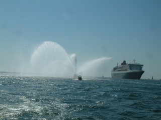 The Port of Long Beach sent a fireboat to the event.