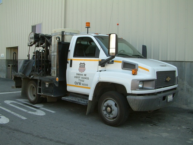 Outside the roundhouse was a service truck used for taking lubricants to locomotives out in the field.
