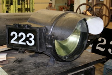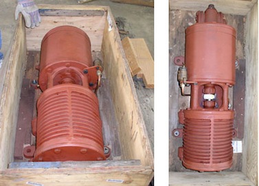 Concurrent with the major restoration efforts we have also been working on the appliances such that they will be ready when the main part of the locomotive is done. So far the dynamo and one air compressor have been rebuilt. The second air compressor is now being rebuilt by Bernie Watts of Backshop Enterprise. The sheet metal of the head light has been repaired and the glass reflector has had a new silver coating applied. Both injectors have also been rebuilt. The engine air tank was hydrostatically tested to 180 psi for 15 minutes with no signs of leaks. The engine air tank is the original tank.