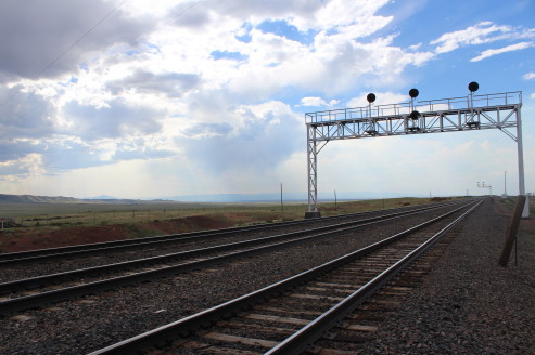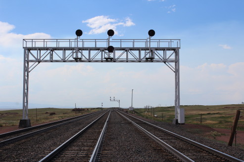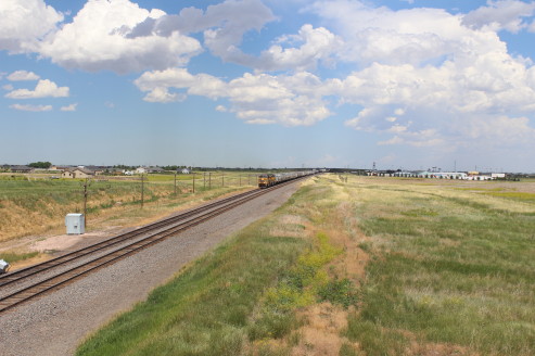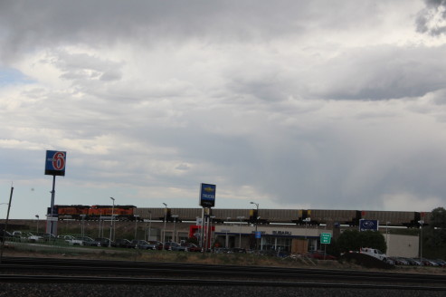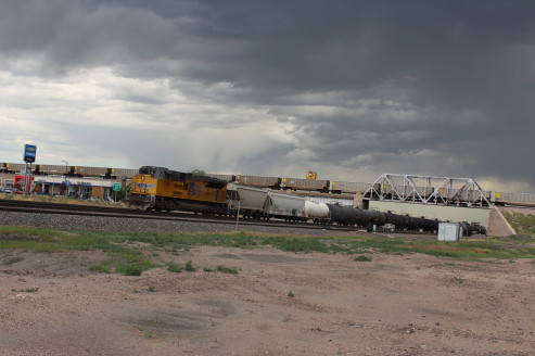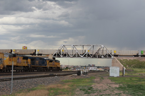 Santa Fe bridge over Union Pacific tracks. It was a short wait