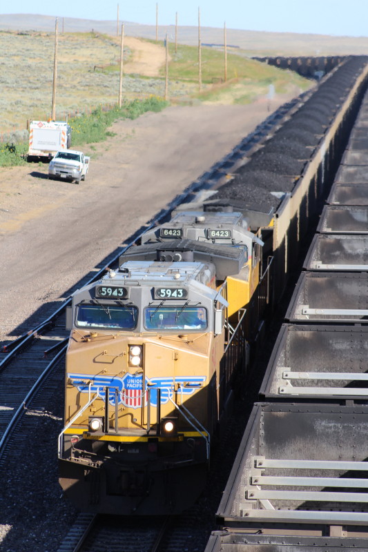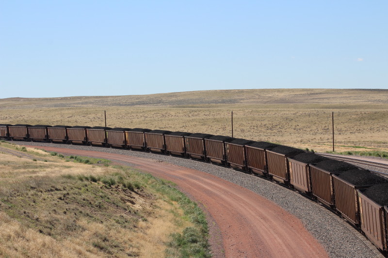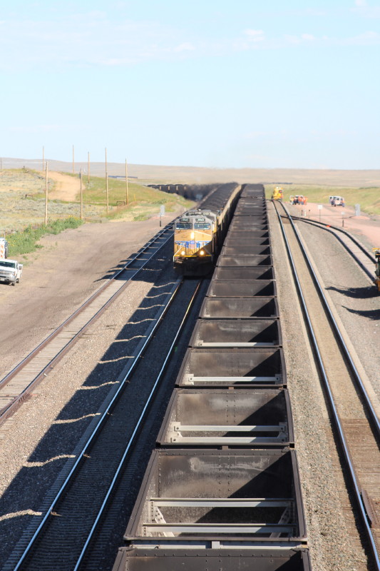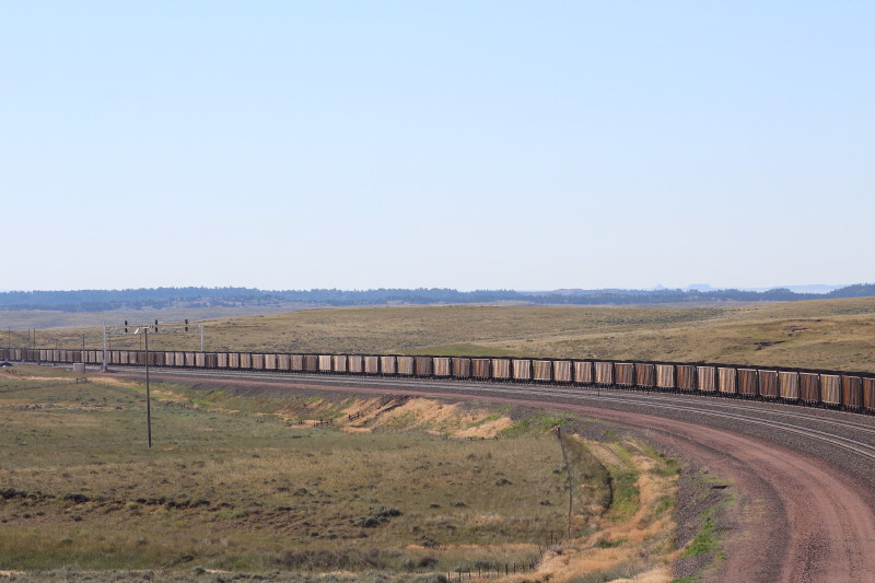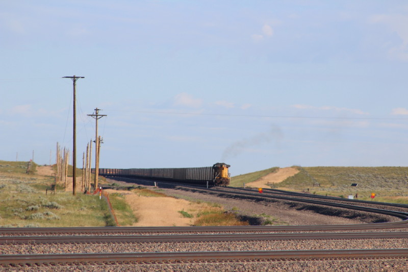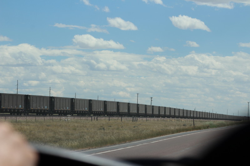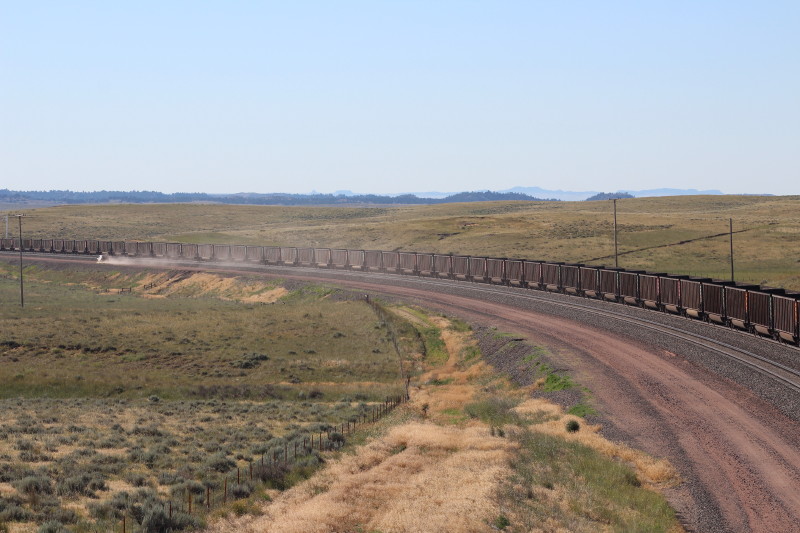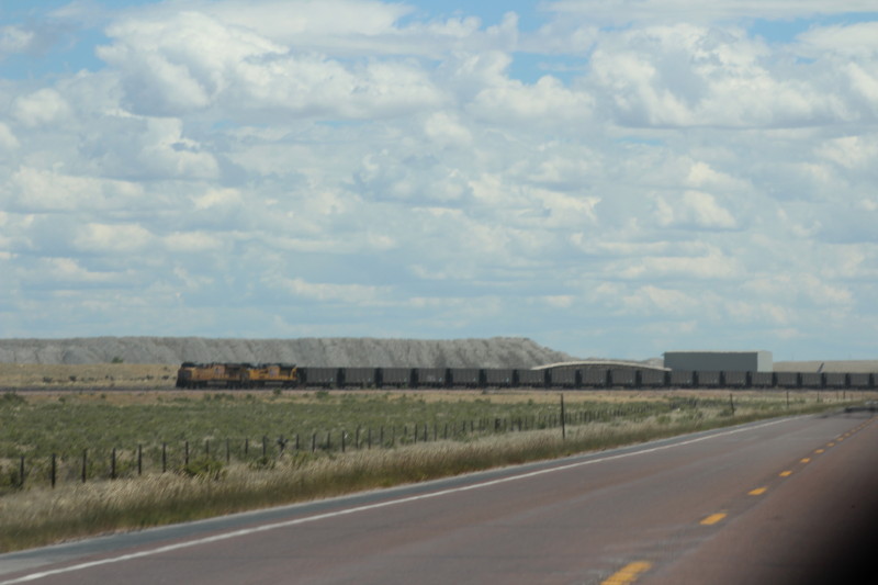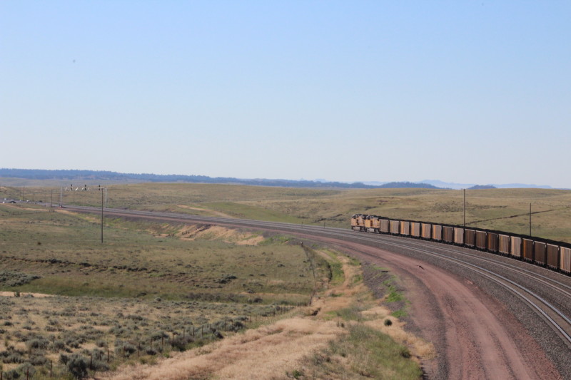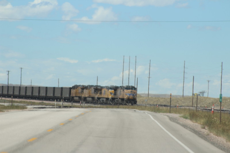 Antelope were along the road. We went to WY 59 and drove north to Flat Top Road to the bridge over the tracks. A few minutes later, a train was coming.