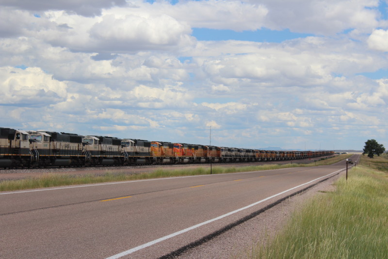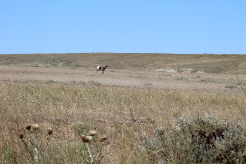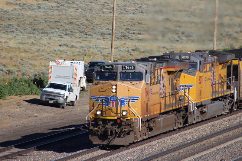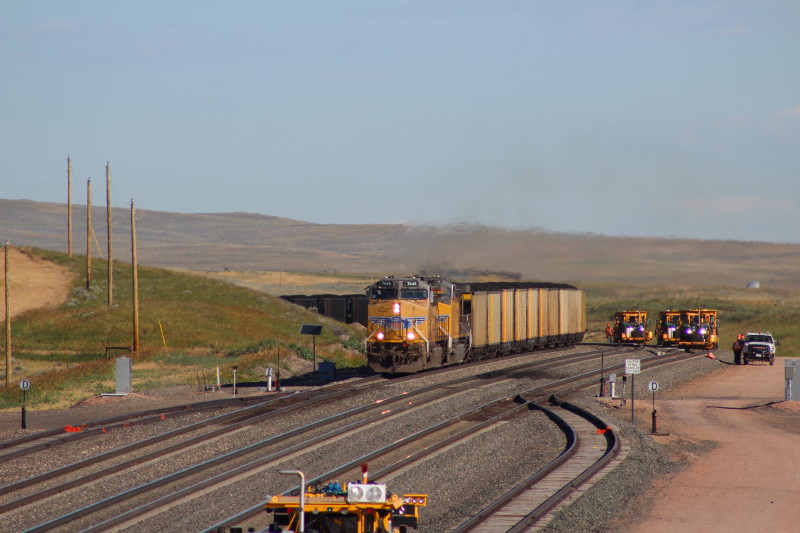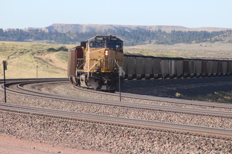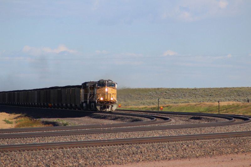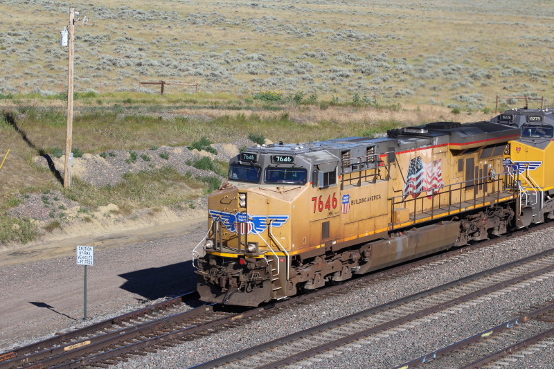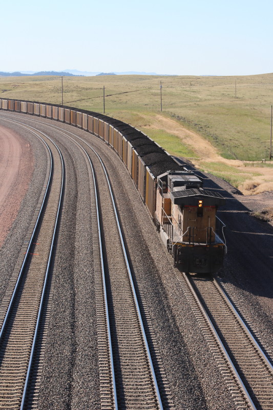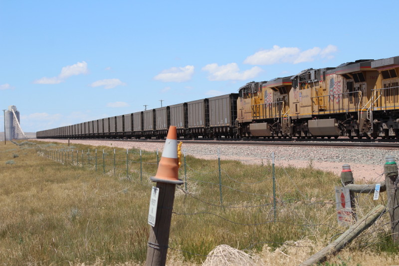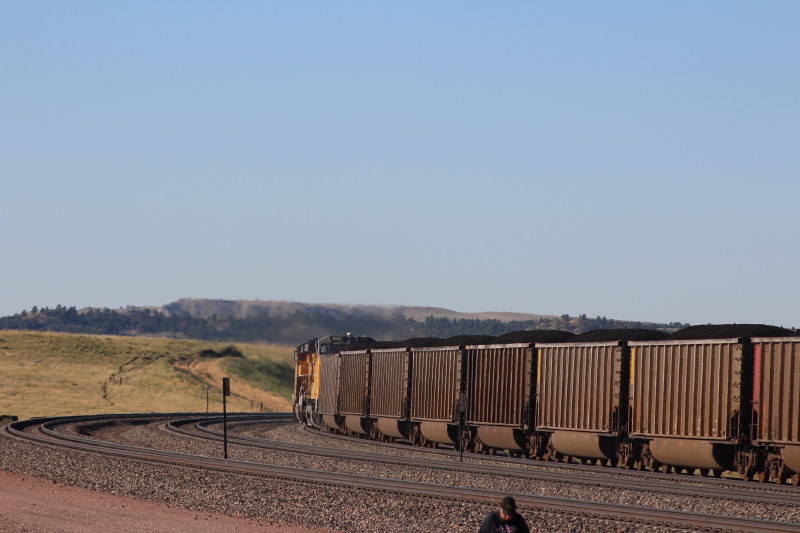 Antelope were along the road. We went to WY 59 and drove north to Flat Top Road to the bridge over the tracks. A few minutes later, a train was coming.