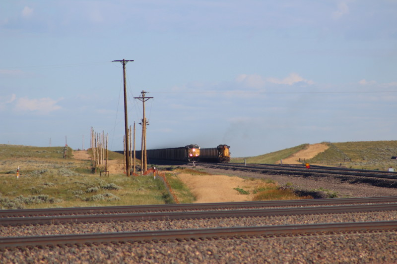 Union Pacific 6678 South at Bill. We drove north to the overpass over the BNSF tracks and saw a headlight to the north so we pulled off and set up.