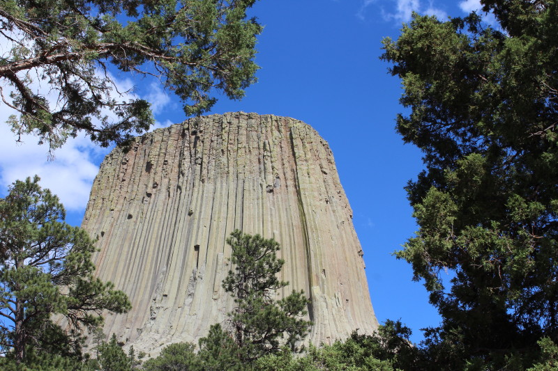Devils Tower did not visibly protrude out of the landscape until the overlying sedimentary rocks eroded away. As the elements wore down the softer sandstones and shales, the more resistant igneous rock making up the tower survived the erosional forces. As a result, the gray columns of Devils Tower began to appear as an isolated mass above the landscape.