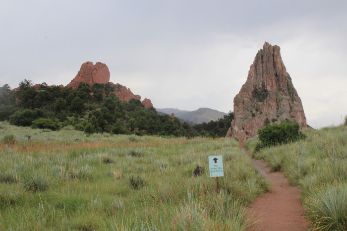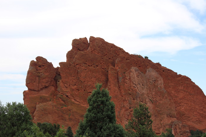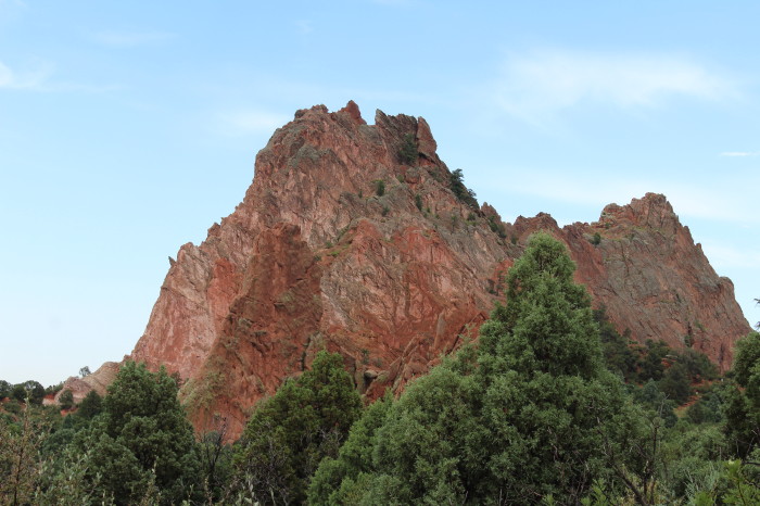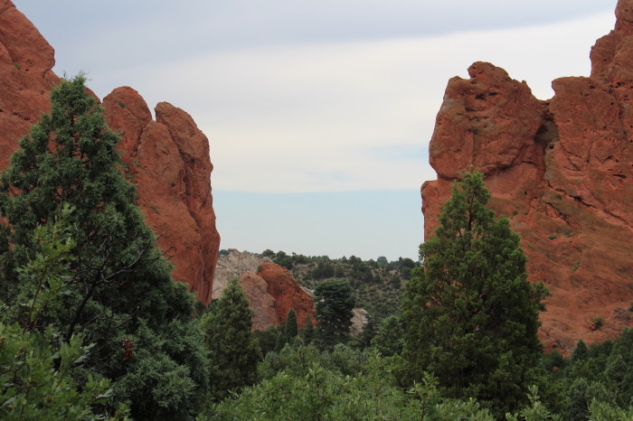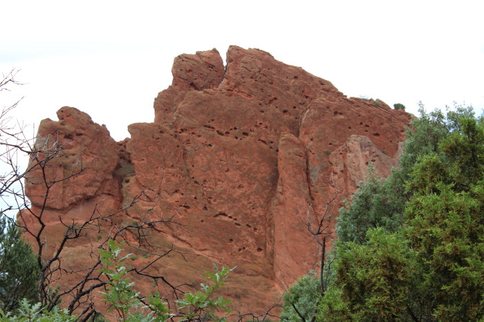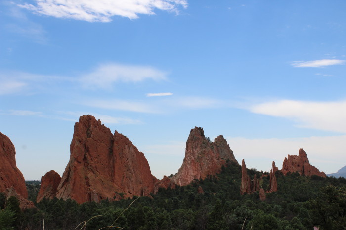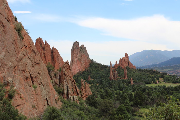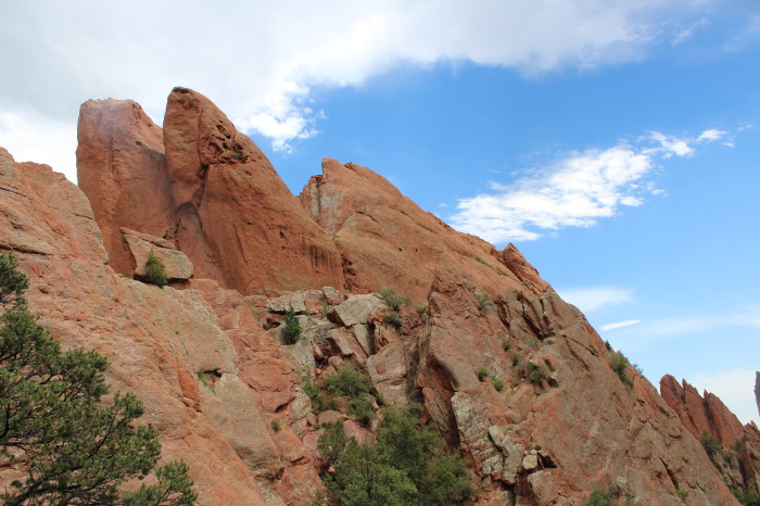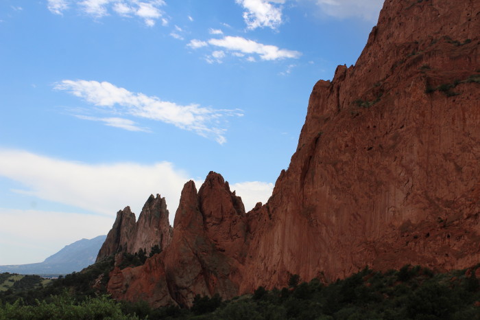 Geological formationThe outstanding geologic features of the park are the ancient sedimentary beds of deep-red, pink and white sandstones, conglomerates and limestone that were deposited horizontally, but have now been tilted vertically and faulted into "fins" by the immense mountain building forces caused by the uplift of the Rocky Mountains and the Pikes Peak massif. The following Pleistocene Ice Age resulted in erosion and glaciation of the rock, creating the present rock formations. Evidence of past ages can be read in the rocks: ancient seas, eroded remains of ancestral mountain ranges, alluvial fans, sandy beaches and great sand dune fields.