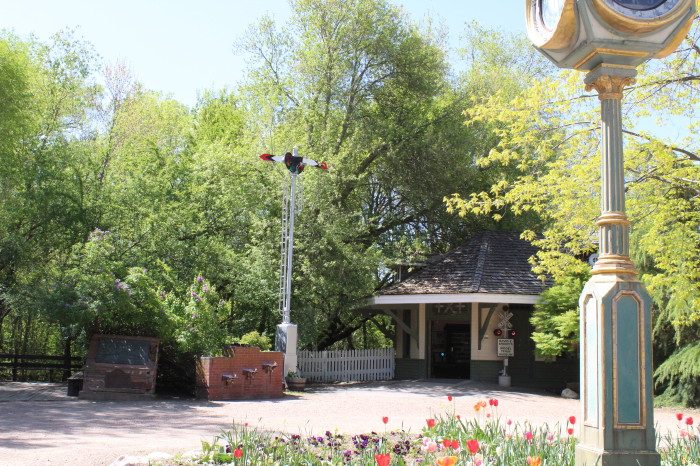 1970-1997The turn-of-the-century style Opera House Square opened in 1968 and showcased melodramas, musicals and silent movies. In 1976 Lagoon expanded east by purchasing Pioneer Village, an old west town complete with several historic structures that had been collected and exhibited in Salt Lake City's Sugar House area since 1953. The buildings were moved to Lagoon and the 2 ft narrow gauge "Pioneer Village Railroad" (featuring "Old Ironsides," a Crown Metal Products 4-4-0 locomotive) circled the town. There was also the "Lagoon Miniature Railroad," which looped around the residential area of Pioneer Village using the original miniature 12 in gauge steam locomotive acquired in the early 1900s. A log flume ride was brought in from the defunct Pixieland Park in Oregon.