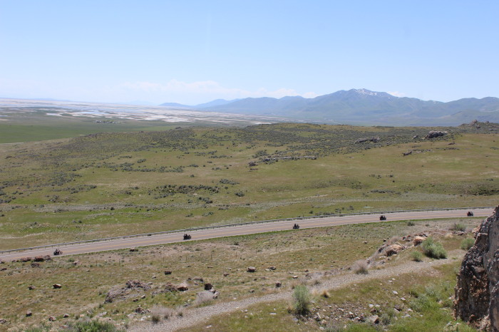 Promontory Summit is an area of high ground in Box Elder County, Utah, 32 miles west of Brigham City and 66 miles northwest of Salt Lake City. Rising to an elevation of 4,902 feet above sea level, it lies to the north of the Promontory Mountains and the Great Salt Lake. It is notable as the location of Promontory Summit, where the First Transcontinental Railroad in the United States was officially completed on May 10, 1869.