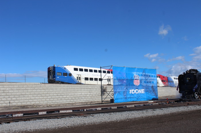 A Frontrunner train into Ogden arriving on the UTA flyover.