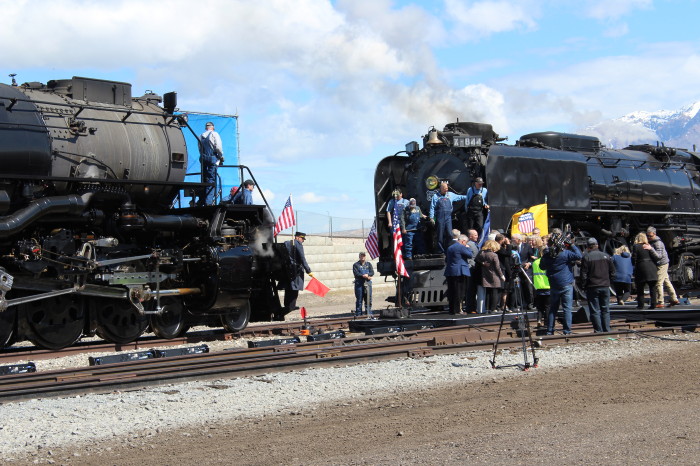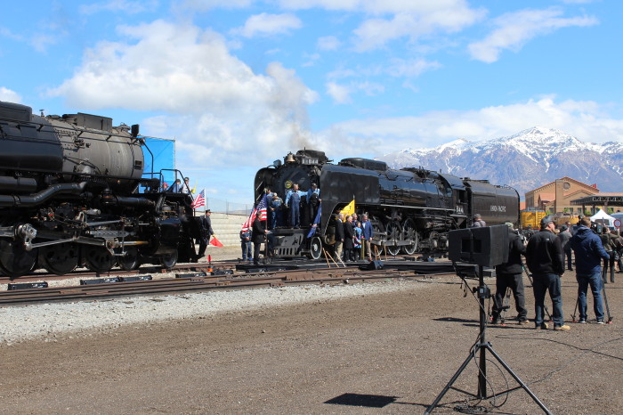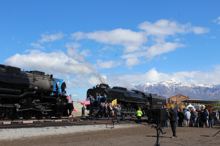Union Pacific Big Boy 4014 moved into nose to nose position with
