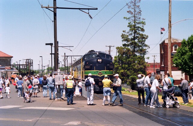 SEPTA Lansdale Station Lansdale PA June 3 2000 NRHS Excursion with Lancaster Chapter FP7 RDG 902 and Philadelphia Chapter FP7 RDG 903 with SEPTA RL1 SPAX 60 and Bombardier coaches and cab car pauses for pictures at Lansdale Station on Lansdale Day June 3 2000 |