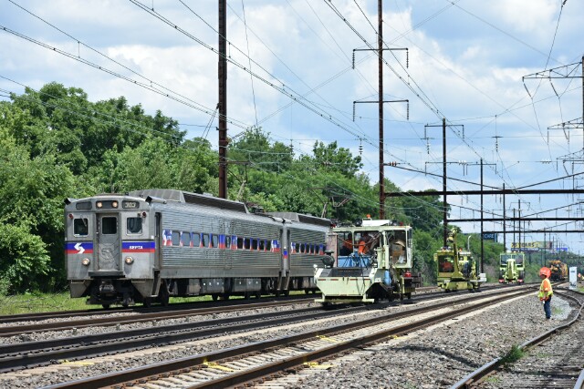 | A couple days later on Amtrak's Northeast Corridor, a Trenton Line train bound for Philadelphia passes some equipment that runs ahead of the TLM. Nothing special there, right? Well, yes and no. While there might be nothing unusual about the equipment ... |