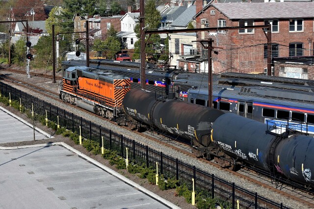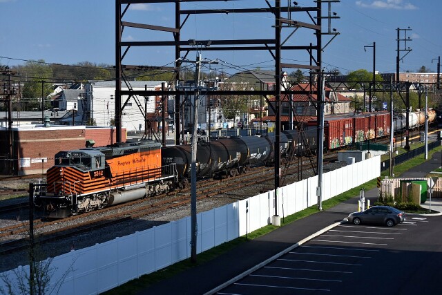 | The return trip takes Track 1 at CP Land, which is good for shots from the SEPTA garage. |
