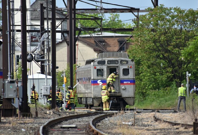 | After the drill, SEPTA personnel popped the windows back in and returned the cars to the MU yard. |